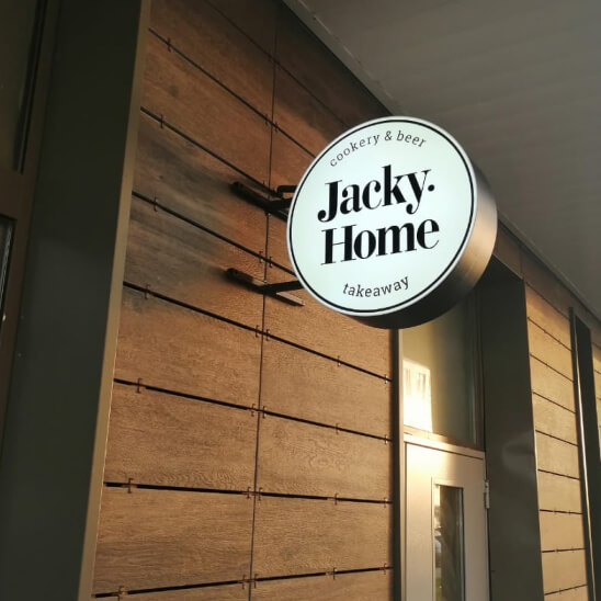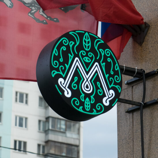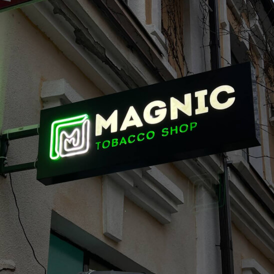 Для производства используется специальный профиль (борт) и лицевая часть. Профиль бывает алюминиевым или пластиковым. Есть двусторонняя подсветка. Привлекает внимание посетителей и придает зданию свежий вид.