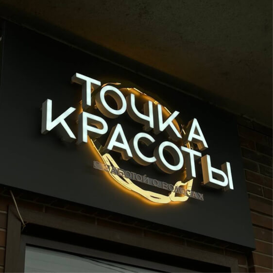 Обязательный элемент практически любой вывески. Буквы могут размещаться на подложке, раме или прямо на стене. Для изготовления используются различные материалы – пластик, оргстекло и металл.